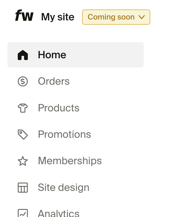 1. In the Site design > Layout section, click Home from the dropdown menu above the site preview. From there, select Coming soon.