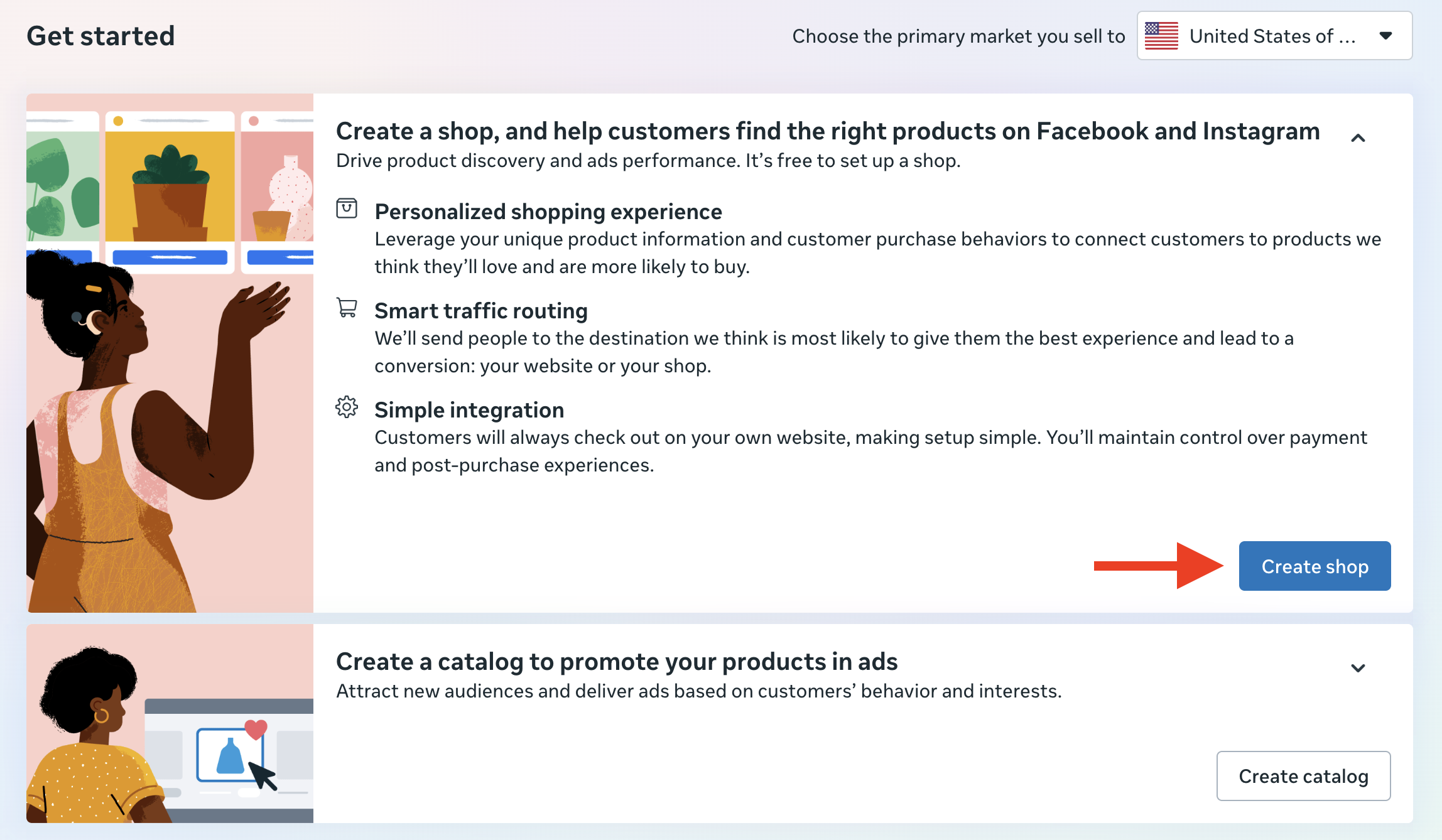 - Make sure your country is supported by Facebook and Instagram shopping. You can see the details here.