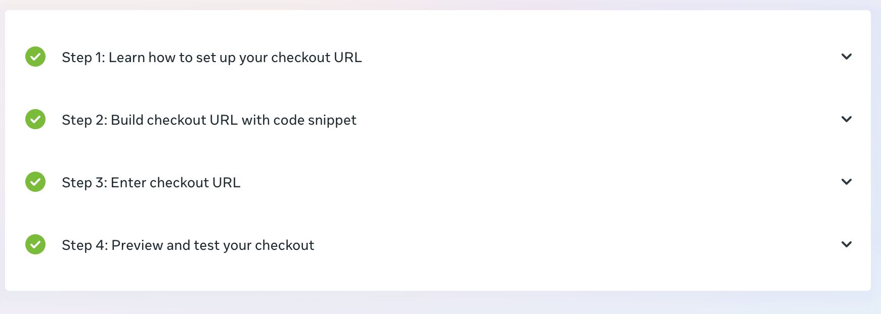 19. After completing these steps, you will see a confirmation that all steps to set up your checkout URL have been completed.