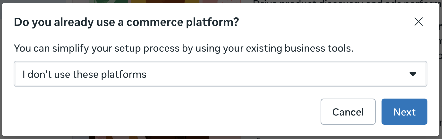 4. A pop-up will appear asking which commerce platform you use. Select the "I don't use these platforms" option.