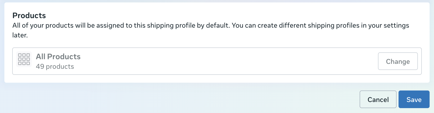 23. By default, all your products will be included under this shipping profile. Leave as such and click "Save" to proceed back to the Overview page, showing the various other steps needed to set up your shop with Meta.