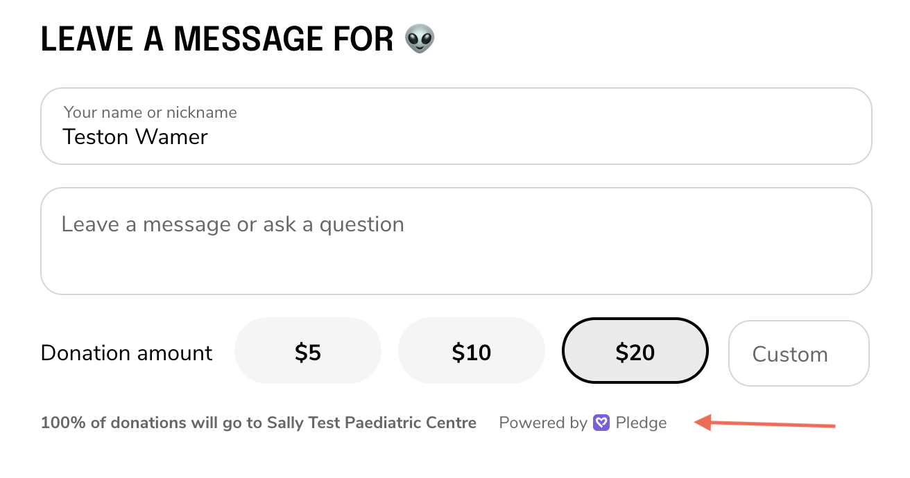 Once your supporter sends over a donation, we will allocate X% of that donation to send to that charity on Pledge's platform, minus any payment processing fees.