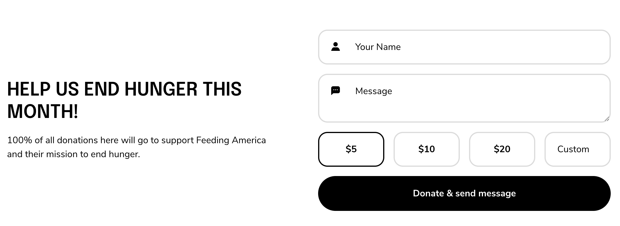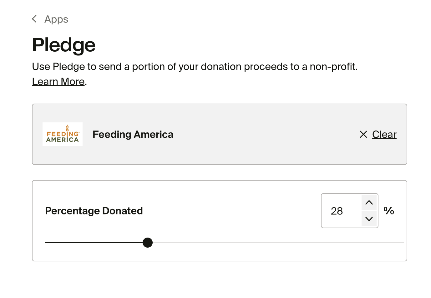 In the example above, 28% of all donation earnings will be sent to the charity "Feeding America."