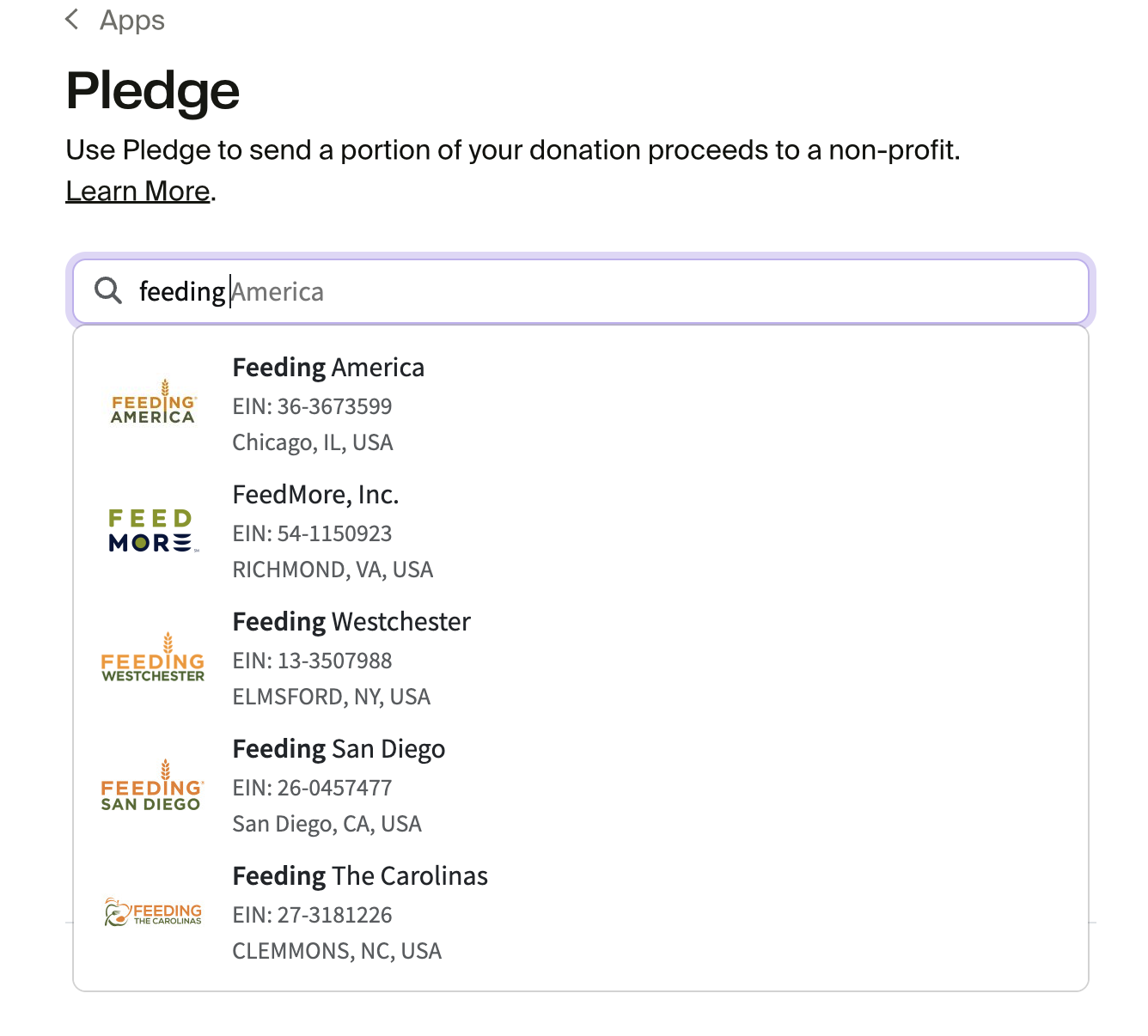 Once you find the charity you want, select it.